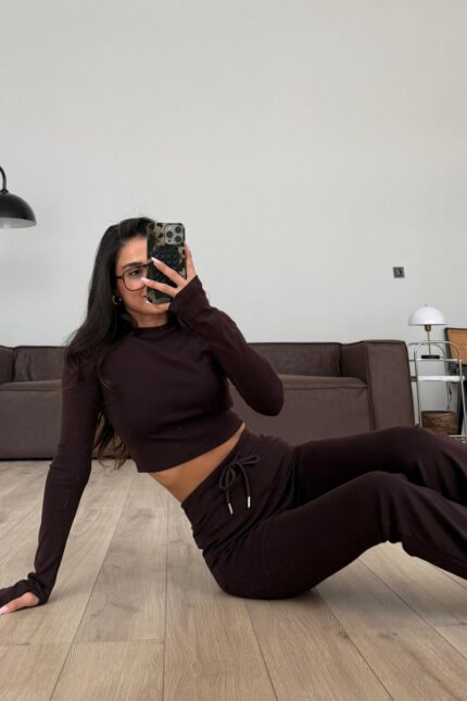 Bohem Kahve Müslin Yırtmaçlı Etek Takım