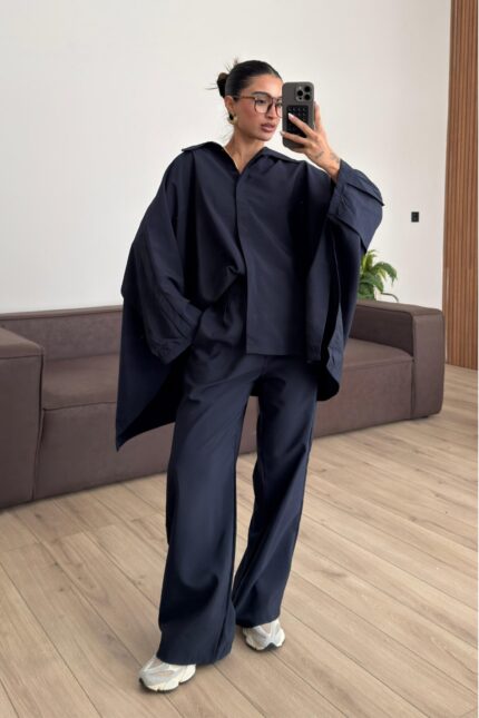 Düğmeli Selen Takım Lacivert