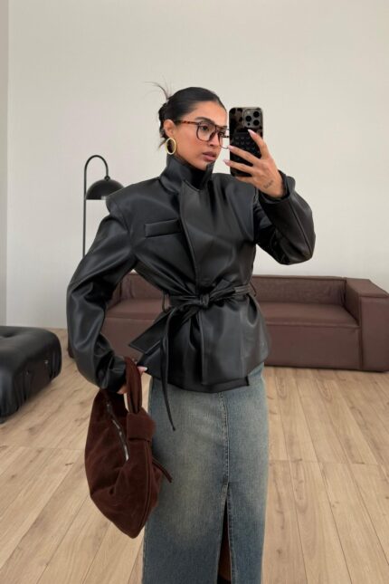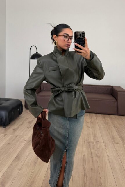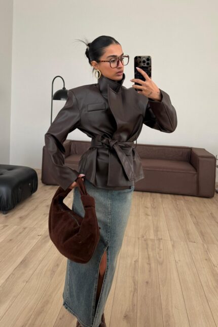 Yumuşak Derili Kemerli Ceket Acı Kahve