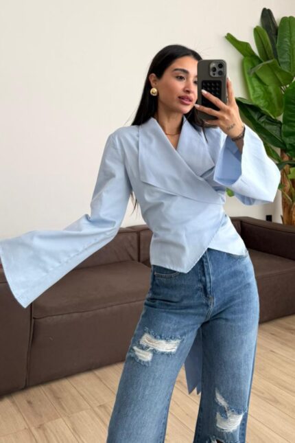 Beli Bağlamalı Geniş Yaka Gömlek Bebek Mavi